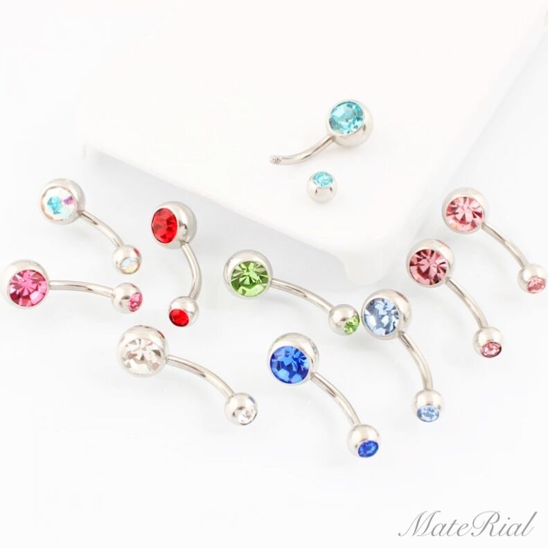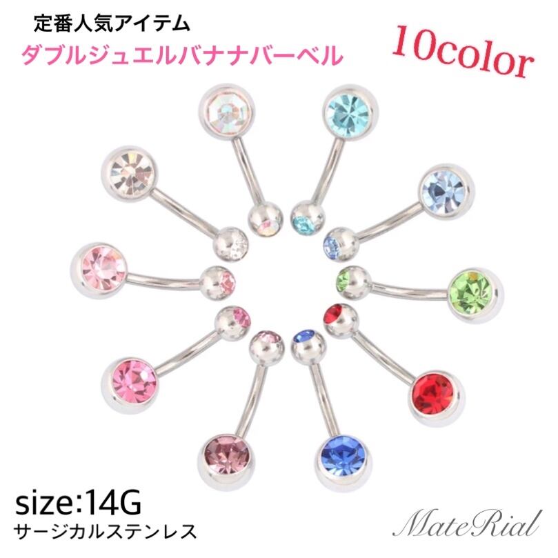 定番!ボディピアスのダブルジュエルバナナバーベル